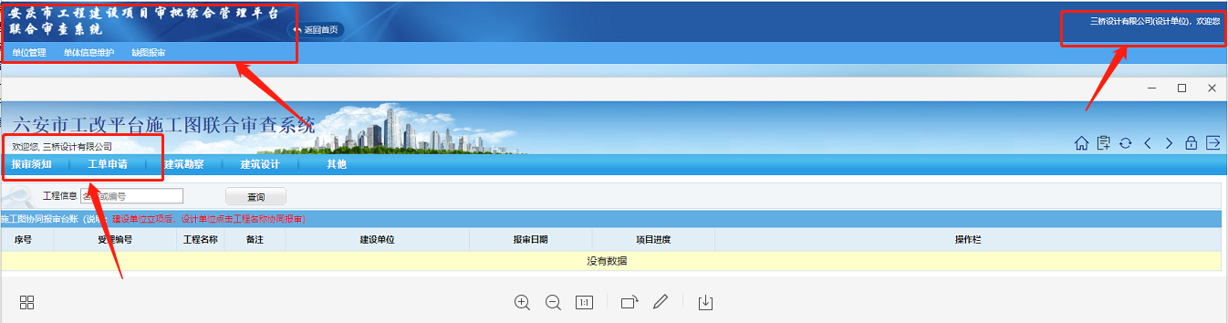 由于国家现在推行智能化施工图审查系统,为了更好地为全国各地的客户服务,我院一直在不断研究各省以及各市的传图系统,我们研究到安徽有一个省的传图系统,但是下面的一些市还有单独的传图系统,今天我们成功入驻了安徽六安的传图系统,为今后当地的项目顺利推进立下基础。