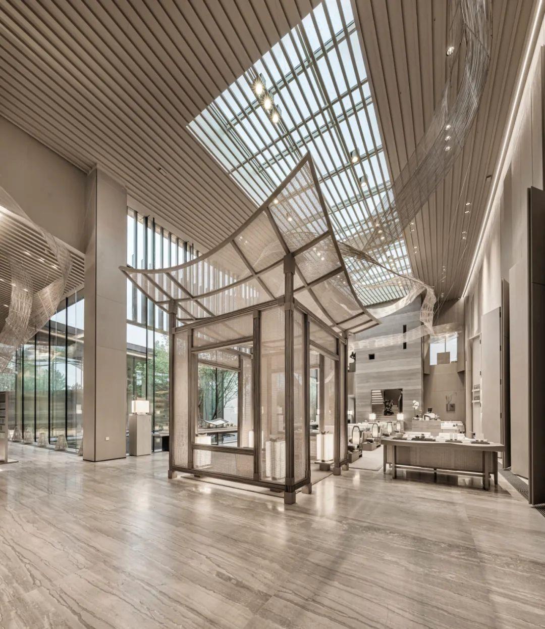 从古至今人们相信龙抬头是祥瑞之兆,售楼处整体形态向上抬起,尤其二层的出挑像极了龙抬头,充满吉祥之意,整个空间营造出一种愉悦悠然的游览体验。